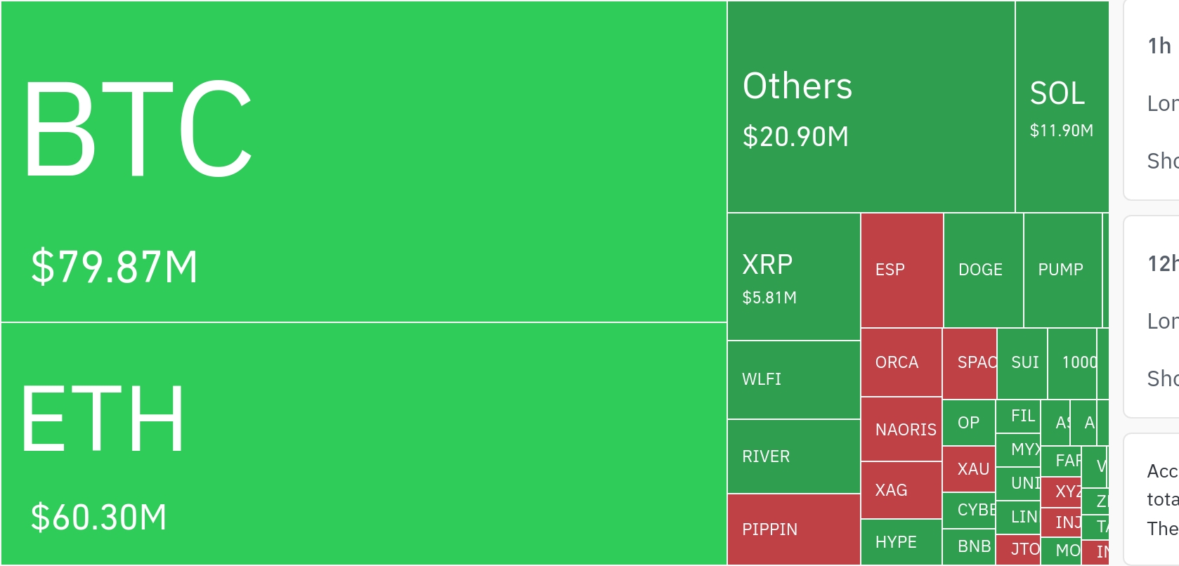 过去24小时加密货币市场清算动态 在过去24小时内,加密货币市场约有1.3442亿美元(约合1965亿韩元)的杠杆持仓被清算。根据当前汇总数据,已清算仓位中多头仓位约6980万美元,占总额的51.9%;空头仓位约6462万美元,占48.1%。 主要加密货币清算情况 过去4小时内,比特币是清算金额最高的加密货币,约为614万美元。其中多头清算143万美元,占23.3%;空头清算473万美元,占76.7%。清算金额第二高的为以太坊,而根据市场隐含数据推测,紧随其后的是SOL。 值得注意的是,WLFI代币在24小时内价格大幅上涨17.81%,同时产生了超过41万美元的清算,且空头清算占比较高。 各币...