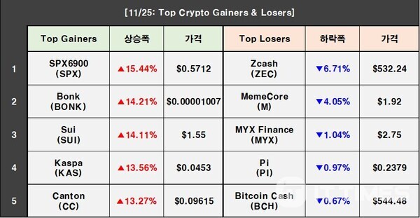 11月26日加密货币行情:比特币下跌0.65%,MON暴涨52.78%