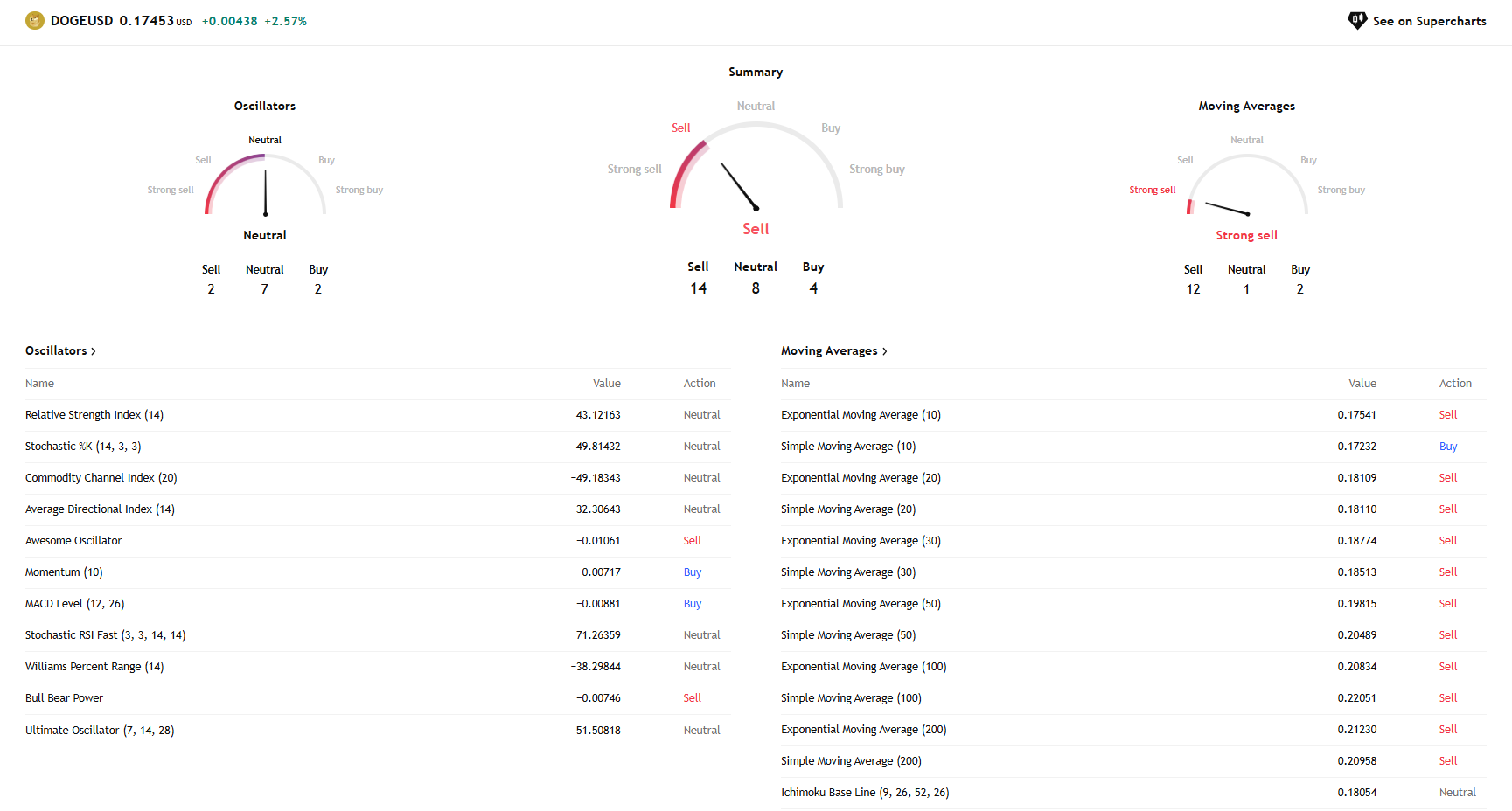 技术指标显示DOGE价格仍受空头控制,当前RSI指数41低于平均值,需突破50才能确认多头接管。