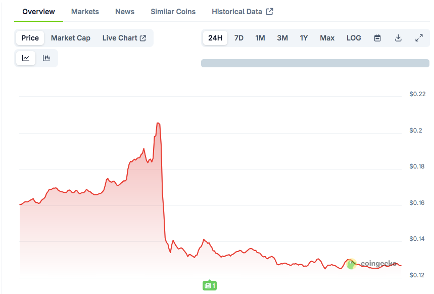 CoinGecko数据印证了该代币的极端波动性,日内最高触及0.2054美元后暴跌至0.1249美元。清算事件引发的恐慌抛售与HLP系统自动干预导致交易量激增。分析人士指出,此类剧烈波动在主流加密货币之外实属罕见。