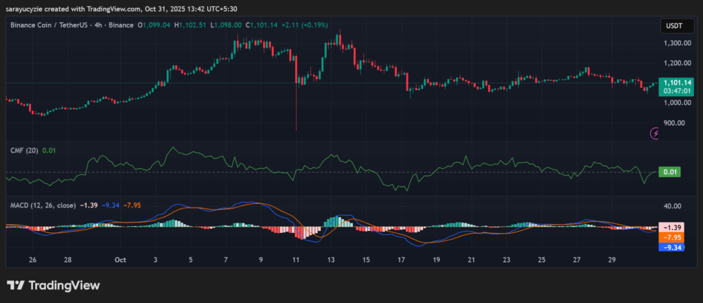 BNB的MACD指标线与信号线均位于零轴下方,表明市场仍处熊市周期。除非出现趋势逆转,资产走势可能持续疲软。而CMF指标值0.01显示中性偏多态势,买卖压力基本平衡,但存在轻微吸筹倾向。