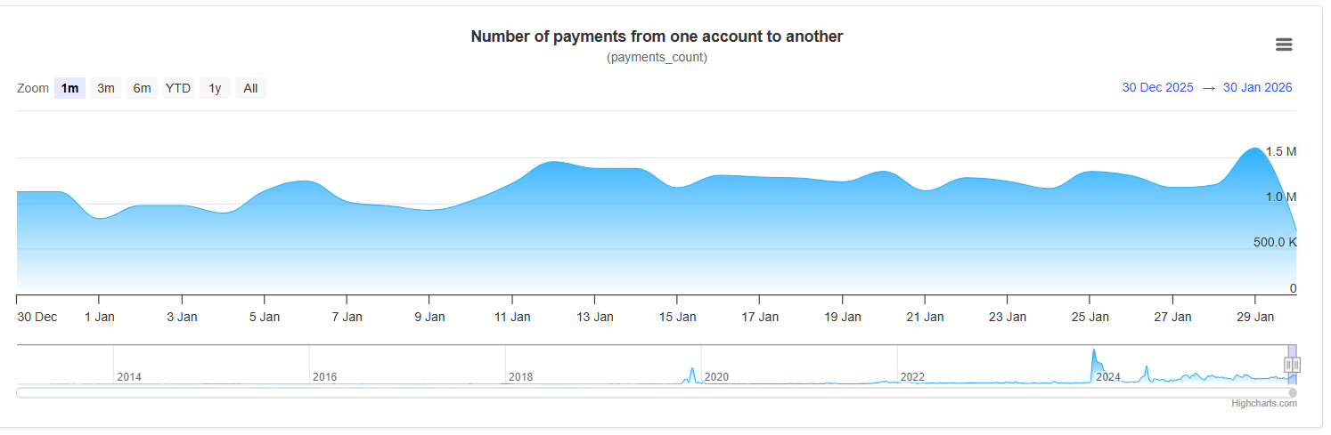 网络中大额支付流量的增加是最值得关注的变化。过去一个月,账户间高频大额转账数量显著上升,推动总支付量达到近几个季度的峰值之一。