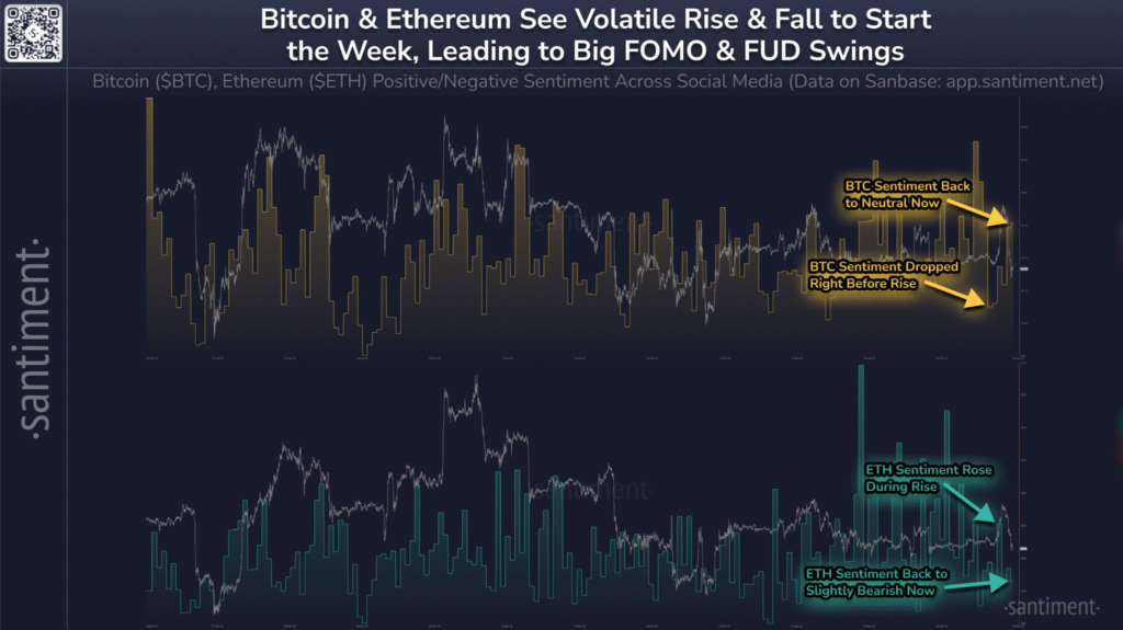 以太坊市场情绪在上涨期间改善,但随后转跌