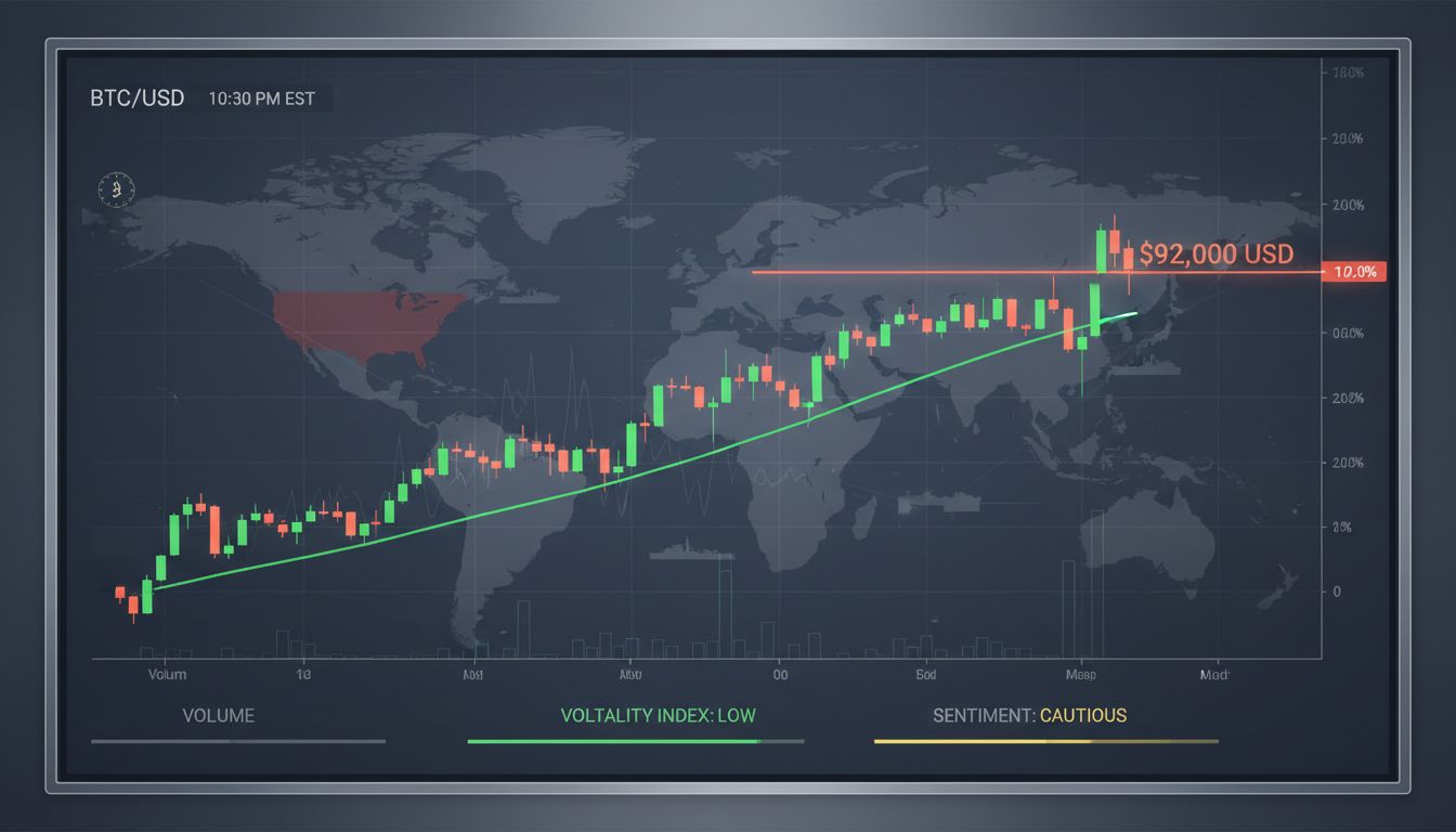 比特币($BTC)突破9.2万美元前夕稍作喘息……市场对“暴风雨前的宁静”保持警惕2026年伊始地缘动荡与政治紧张中的比特币走势 随着美国对委内瑞拉发起军事行动、委内瑞拉总统尼古拉斯·马杜罗被捕,以及美国总统与美联储主席公开对立等风险事件接连发生,比特币价格近期在约9.2万美元水平陷入停滞。 当前市场将低波动性解读为预示比特币未来方向的信号。实际波动率已跌至历史低位,此类阶段通常被视为大规模价格波动的前兆。 市场分析师阿克塞尔·阿德勒在近期报告中指出,比特币实际波动率已降至23.6%,接近当前周期内的波动率低点。价格走势放缓、动能减弱,市场实际上已进入“停滞”状态。 历史表明,此类“压缩阶段”往往不会持续太久。当供需失衡在水面下逐步积累至临界点,比特币常会展现出急剧的方向性2 分钟前0.04%