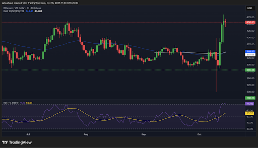 Bittensor(TAO)正凭借其强势反弹成为加密货币领域的焦点。最新数据显示,TAO价格在过去24小时内飙升近11%,展现出明显的看涨态势。根据,该代币当前交易价格约为459美元,突破多重阻力位后形成的技术形态尤为亮眼。