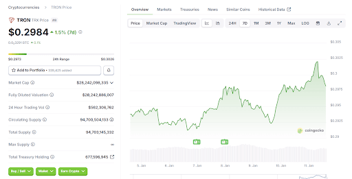 波场凭借强劲的网络活跃度与稳定的交易量,持续在市场占据稳固地位。目前TRX交易价格接近0.3美元,反映其虽涨幅温和但增长稳健。许多分析师指出,若当前势头得以保持,对2026年初的波场价格预测区间在0.31至0.32美元之间。这一前景对追求可靠性而非剧烈波动的持有者具有吸引力,尤其是在市场不确定性较强的阶段。