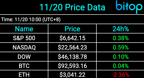 标普500指数结束了连续四天的下跌趋势,因美联储公布的10月会议纪要显示内部意见存在分歧。交易员对12月10日降息25个基点的预期已降至32%。比特币(BTC)过去一周跌幅超10%,昨晚最低触及88,608美元,以太坊(ETH)同样跌至2,873美元。尽管英伟达强劲财报公布后加密市场有所回升,但整体情绪仍非常脆弱,恐惧与贪婪指数仍处于16的极度恐惧区间。K33报告指出,此次快速回调中杠杆加剧,呈现危险的不稳定结构,BTC可能回调至84K-86K区间。