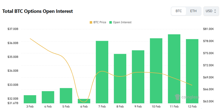 比特币期权市场正在显示未平仓合约减少以及看涨与看跌期权供需平衡的变化。根据12日上午9时CoinGlass数据,比特币期权未平仓合约总额为362.9亿美元。这较前一日(366.3亿美元)减少了约0.9%。 未平仓合约构成中,看涨期权占55.74%,看跌期权占44.26%。看涨期权占比持续过半,从中期视角看,市场仍维持看涨预期占优的格局《比特期权日报》:未平仓合约降至362亿美元……看跌交易比例短期占优刚刚