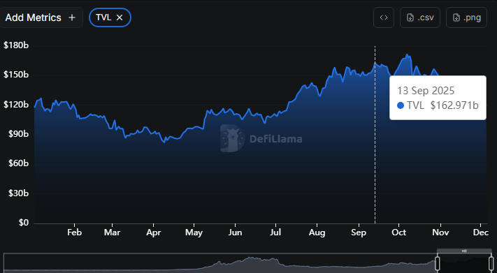 到2024年12月,这次重置的成效逐渐显现。TVL突破1300亿美元大关,标志着市场对DeFi长期价值的信心重建。2025年初这一趋势得以延续,即使在波动市场环境中TVL仍维持在1200亿美元以上。上半年复苏势头持续增强,至第三季度时DeFi再次突破1600亿美元关口——这场复苏缓慢而稳健,具有明确的结构性特征,而非叙事驱动型反弹。