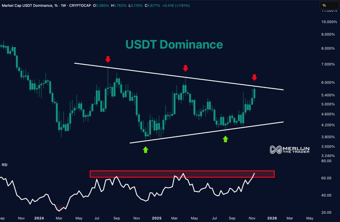 USDT主导率逼近6%关键阻力位 历史数据揭示加密市场转折信号