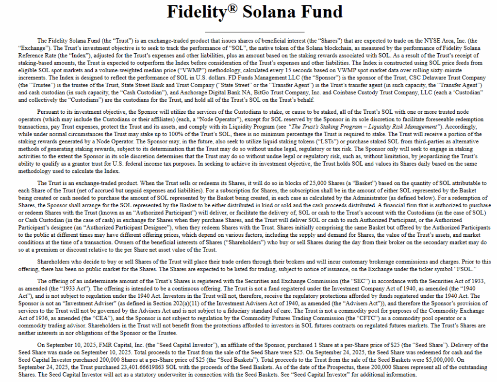 富达Solana ETF 424B3文件 | 来源:美国证交会