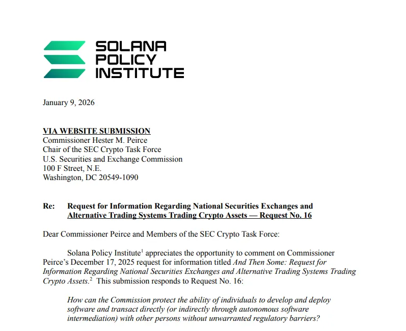 Solana政策研究所表示,智能合约协议上的交易不同于在交易所或替代交易系统上的交易,不应被等同对待。