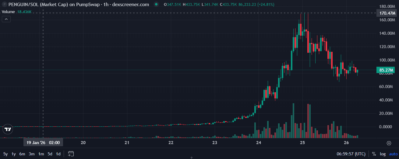 PENGUIN代币受益于多种因素:病毒式社交媒体内容、白宫的放大效应、文化怀旧情绪以及社区对竞争版本的争论。这些因素的结合创造了持续的注意力和投机兴趣,即使更广泛的迷因币板块正在下跌。