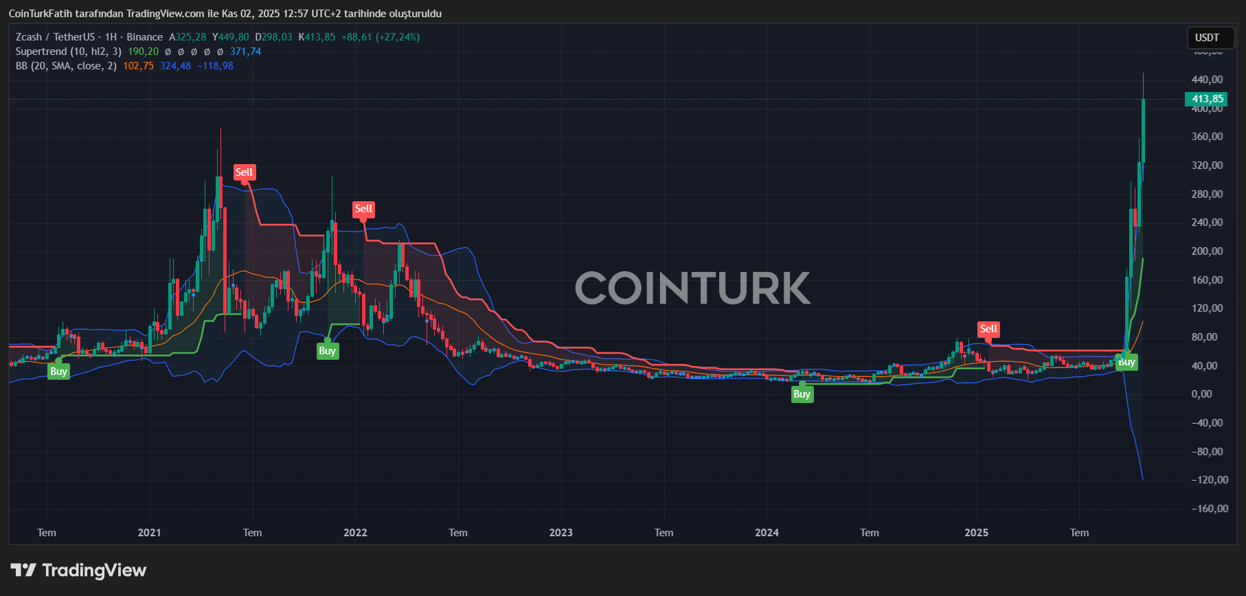 ZEC的表现尤为亮眼,近一月内实现7.3倍涨幅,同时维持着2021年374美元的历史峰值,表明其仍处于价格发现阶段。若能将该价位转化为支撑位,或将创造更高纪录。长期关注我们的读者可能注意到,在10月9日的分析中曾预测:若突破290美元关口,ZEC有望冲击650美元新高峰,当时该代币报价约177美元。
