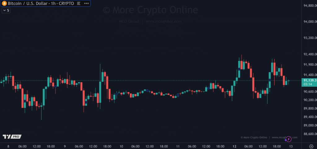 近日一张来自More Crypto Online的图表显示,比特币价格曾短暂飙升至91,900美元上方,随后趋于稳定。虽然市场波动可能令部分交易者感到困扰,但整体情绪表明比特币仍保持上升趋势。