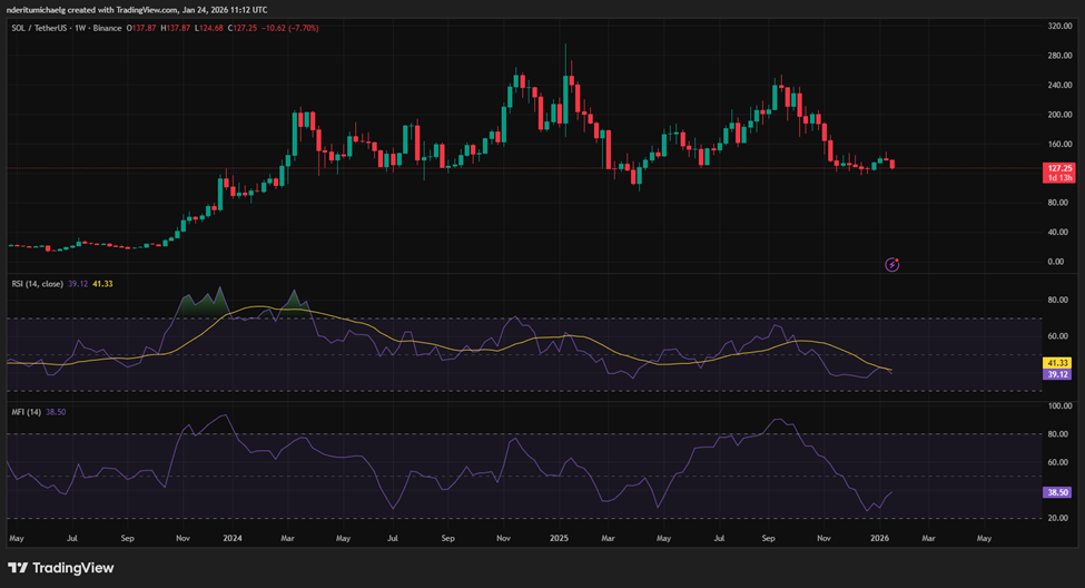 尽管Solana加密货币价格处于短期下行趋势中,但其相对强弱指数和资金流量指数仍指向上升趋势的相对强度。这可能表明该加密货币正在经历显著的吸筹过程,尽管空头在本周占据了上风。
