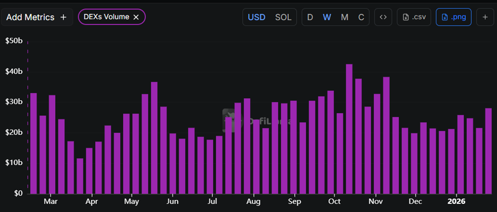 在强劲的现实世界资产交易量支撑下,Solana去中心化交易所交易量跃升至11周以来的高点。