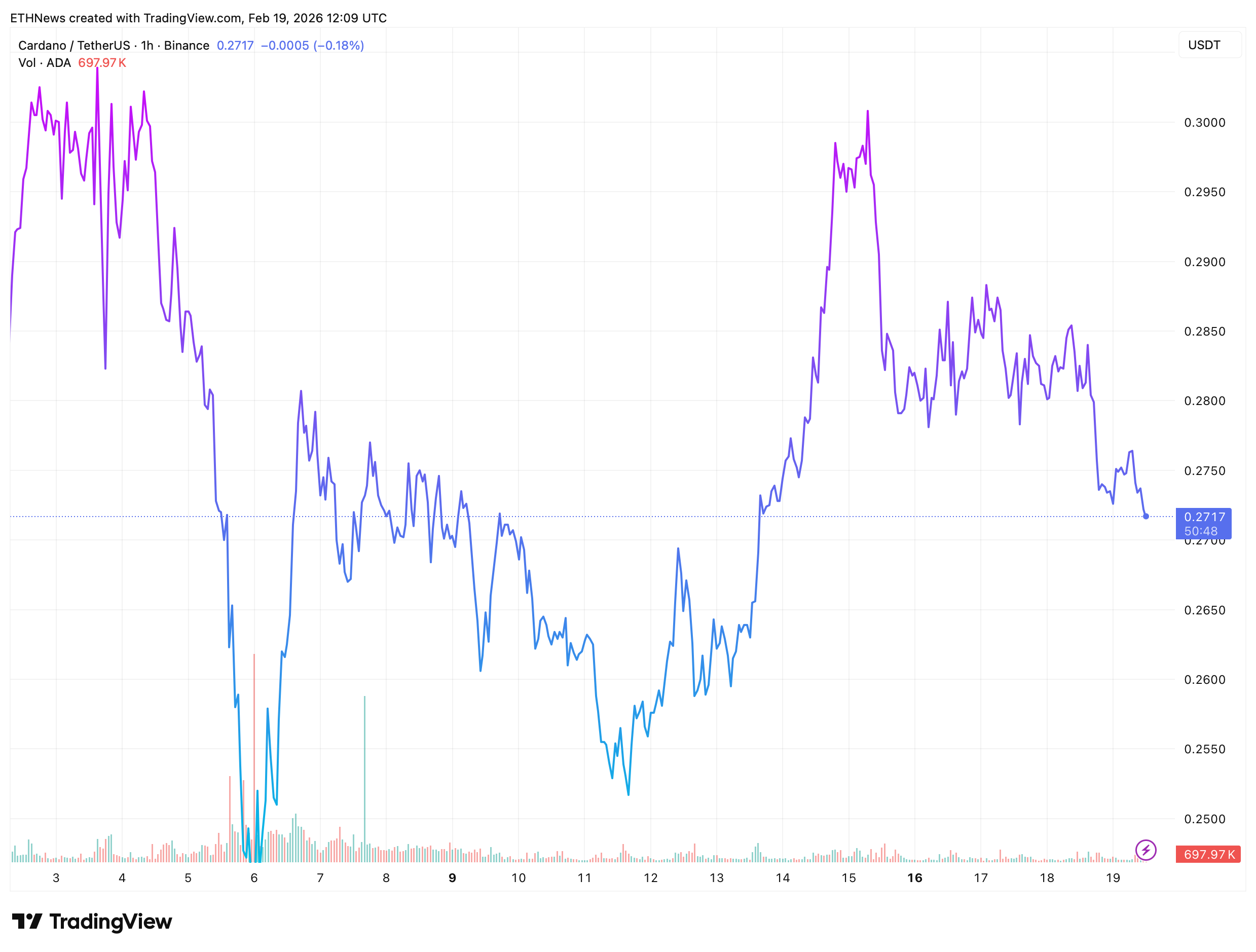 从技术层面看,ADA正处于决策关口。若买方能守住0.26-0.27美元支撑,则向下降阻力线的技术性反弹将具备结构有效性,该走势可能指向0.33美元区域——即更大周期下降趋势线的交汇处。