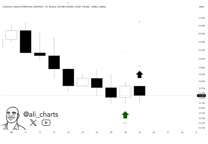 分析师Ali在社交媒体发布图表称“随着TD序列指标呈现多个买入信号,Chainlink $LINK已准备好反弹”,此后Chainlink引发市场关注。其发布的图表显示日线图上形成了密集的TD信号簇。