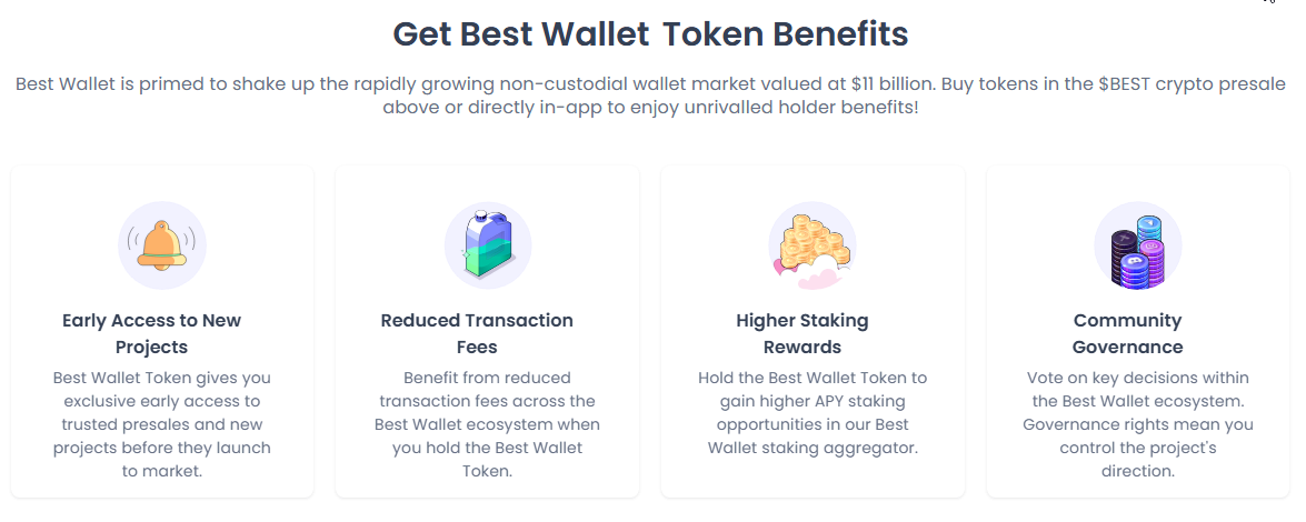 Best Wallet Token(BEST)应运而生,作为专为链上效用设计的跨链钱包核心代币。持有者可享: