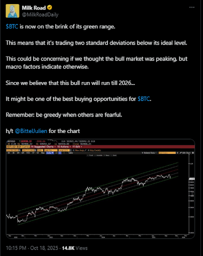 Milk Road基于宏观与技术模型将当前区间定义为"深度价值区",认为这可能重演2019年和2023年大反弹前的相同模式。