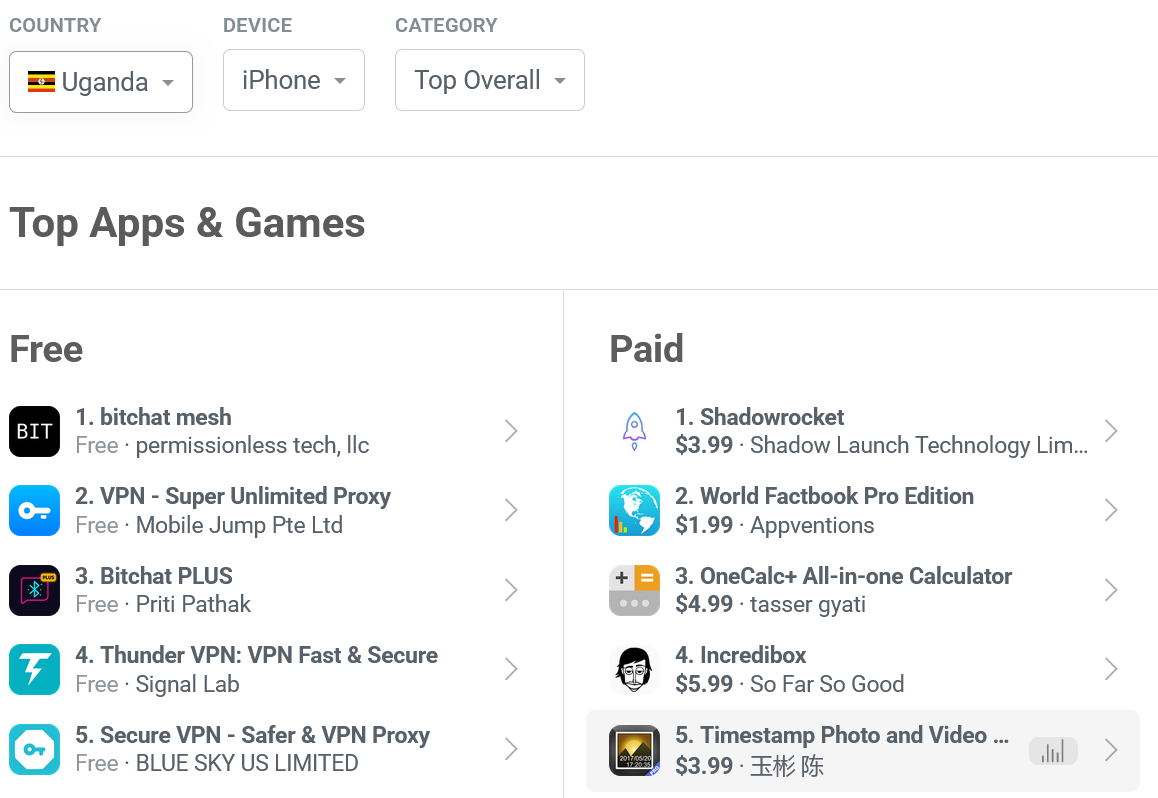 基于蓝牙网状网络的离线加密通讯应用Bitchat,目前位居乌干达苹果应用商店和谷歌应用商店榜首。其他热门应用包括虚拟专用网络工具,凸显在周四投票临近之际,信息获取仍是当地最迫切的需求之一。