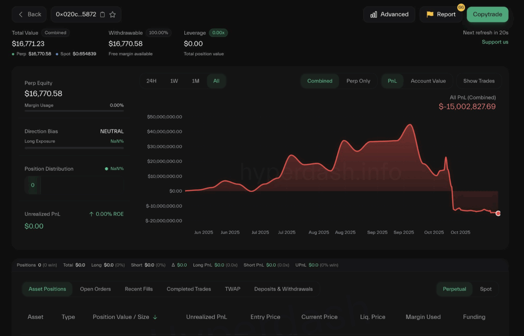 Machi Big Brother(@machibigbrother)已被全仓强平,账户仅剩16,771美元——总损失超过1500万美元。https://t.co/sEQjBr1CEFpic.twitter.com/CiskZPrxtn— Lookonchain (@lookonchain)2025年11月3日
