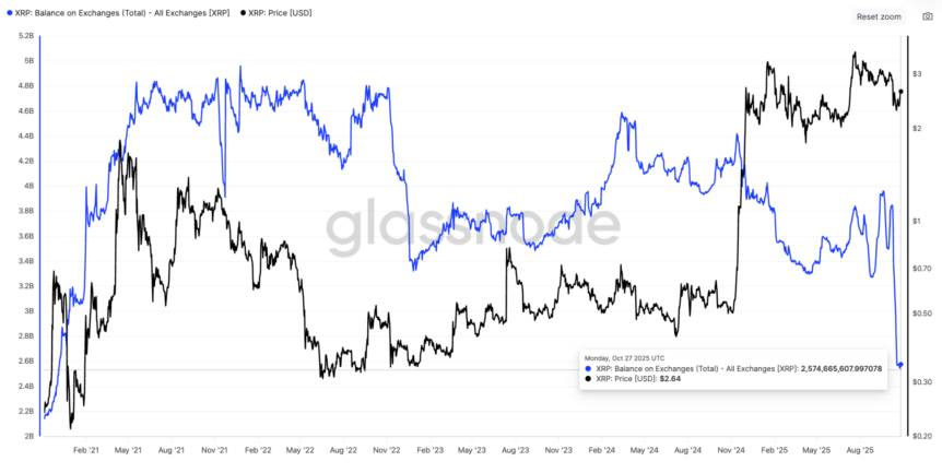 考虑到该形态强度及近期积极势头,分析师认为XRP可能快速突破。有观点指出,若右肩形态完美演绎,价格或将飙升至3美元上方。正如先前报道,这些看涨信号出现之际,正值机构活动加剧和交易所创纪录资金外流,两者共同指向显著的积累阶段,可能在未来数周推动价格冲击3美元乃至更高目标。