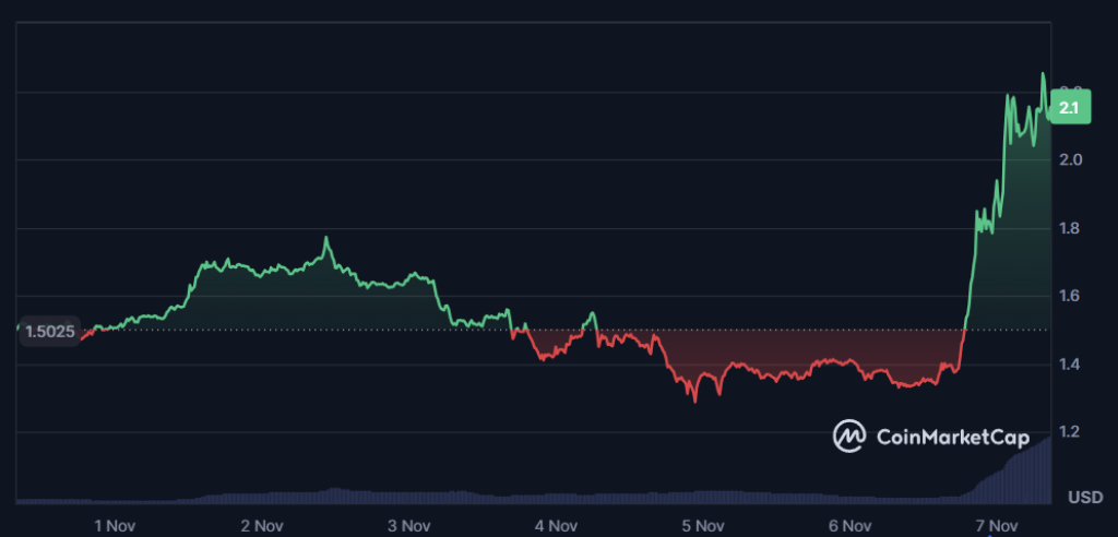 当HYPER占据预售话题时,GROK的第二推荐FIL已展现爆发态势——过去24小时暴涨50%至2.1美元,成交量堪比本周初ICP的突破行情。其核心驱动力来自: