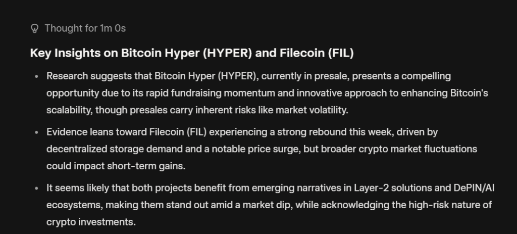 为发掘本周领涨项目,我们邀请以趋势预判闻名的AI分析师GROK进行推荐,其给出的答案既清晰又出人意料。不同于市场热议的$ZEC等热门币种,GROK基于数据模型建议采取"高风险高回报创新+成熟基础设施"的双线布局:关注预售项目Bitcoin Hyper (HYPER)与公开市场代币Filecoin (FIL)。