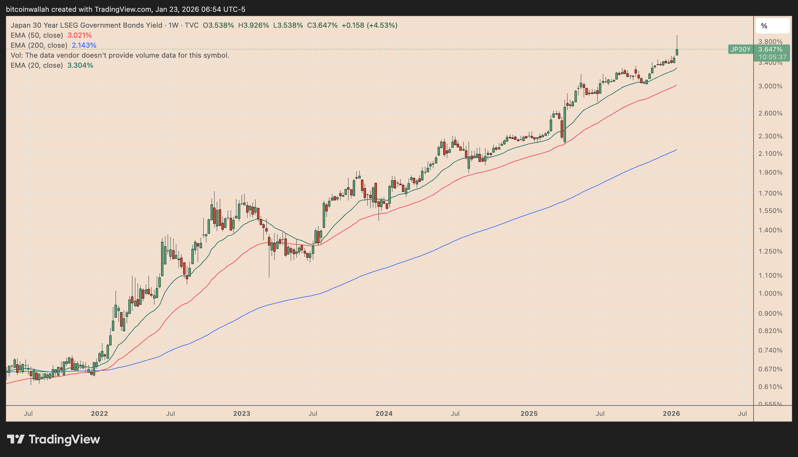 本周,日本30年期国债收益率升至3.92%的历史新高,使其与2年期债券收益率的利差扩大了220-325个基点。