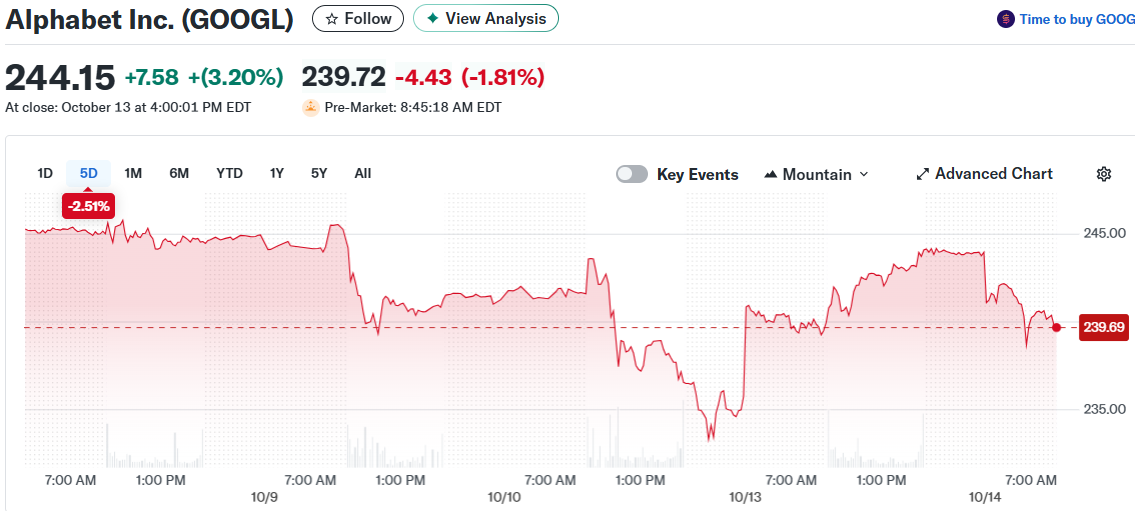 谷歌计划在未来五年内(截至2030年)投资150亿美元,在印度维沙卡帕特南建设1吉瓦规模的数据中心和AI枢纽。这标志着谷歌在印度的最大笔投资,超过了2020年承诺的100亿美元。该项目包含海底电缆基础设施,将与Bharti Airtel和AdaniConneX合作开发。AI枢纽将提供谷歌完整的AI技术栈,包括定制Tensor处理单元及Gemini等模型的访问权限。尽管周二盘前交易中GOOGL股价下跌约1%,但周一该股曾上涨3.2%。