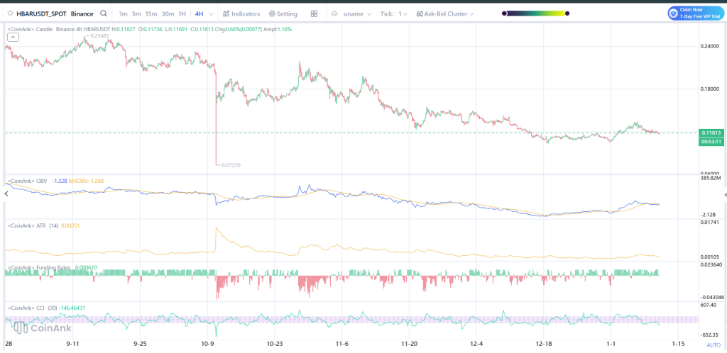 本周HBAR大概率将在0.115-0.130美元区间波动。若突破0.132美元将改善短期技术形态,而跌破0.110美元则意味着更大级别的调整仍在持续。