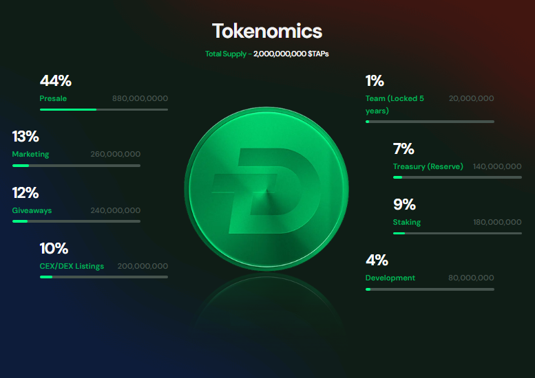 $TAP代币最初于2025年中向投资者发售。作为分级销售流程的一部分,$TAP被设定在每轮售罄或到期后增值。