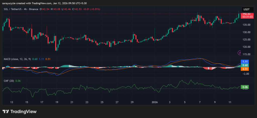 放大四小时交易图表来看,随着Solana多头的推动,价格很可能会上涨并重新测试145.07美元的阻力区间。如果上行压力增强,可能会出现黄金交叉,最终将资产价格推向148.30美元甚至更高。
