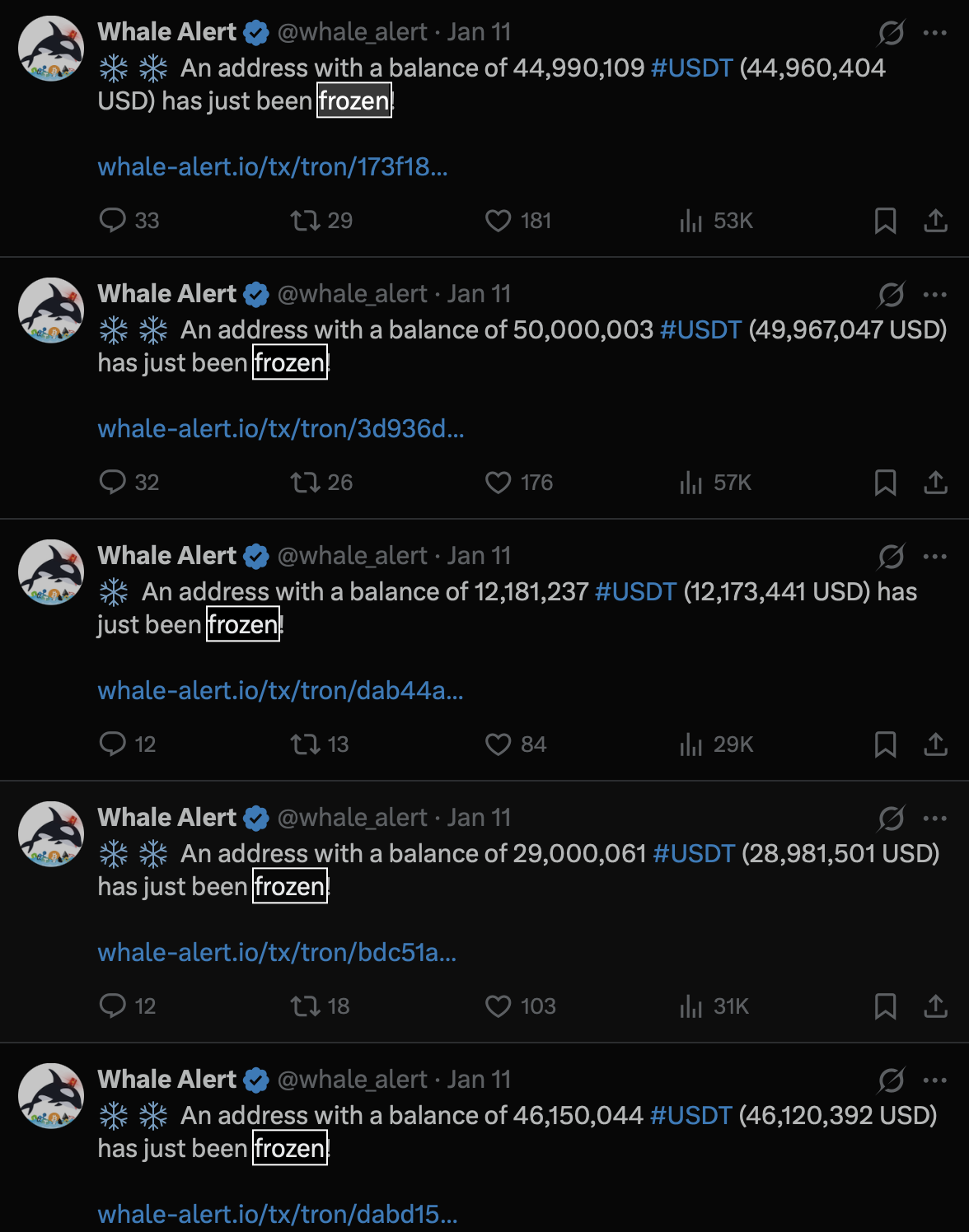 被冻结的资产位于波场区块链上,USDT在该网络中仍是最广泛使用的结算资产之一。