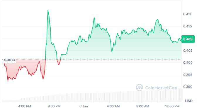 上涨期间成交量显著放大,其后仍保持高位。横盘期间的持续成交量表明市场参与活跃,而非动能衰竭。0.40美元区域已多次充当近期支撑,这一行为表明价格已被接受在先前阻力之上。