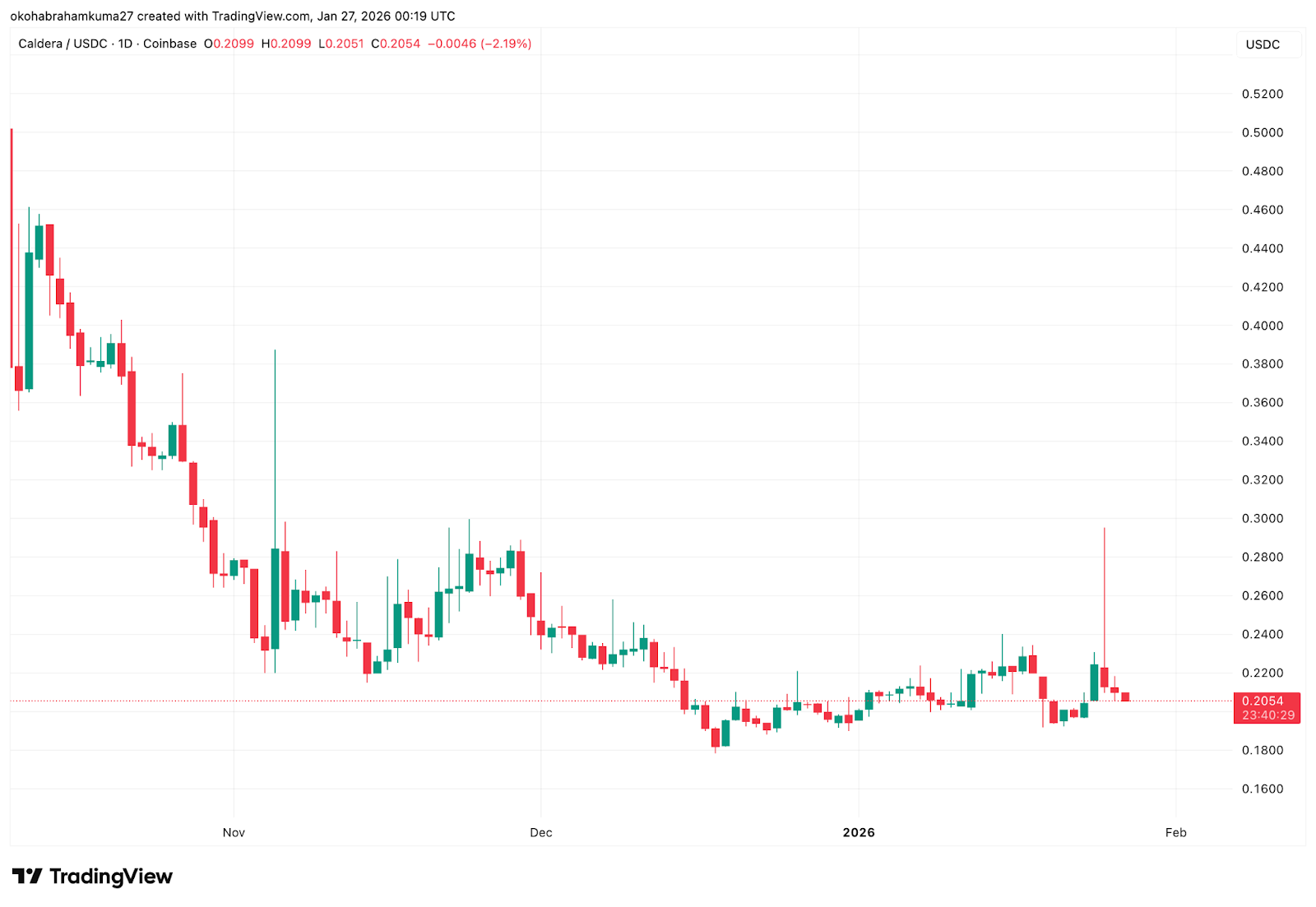 Caldera 常被列为以太坊生态系统中值得关注的新兴加密货币项目之一。截至1月26日,其过去七天内价格上涨了0.30%,表现优于同期下跌5%的全球市场。