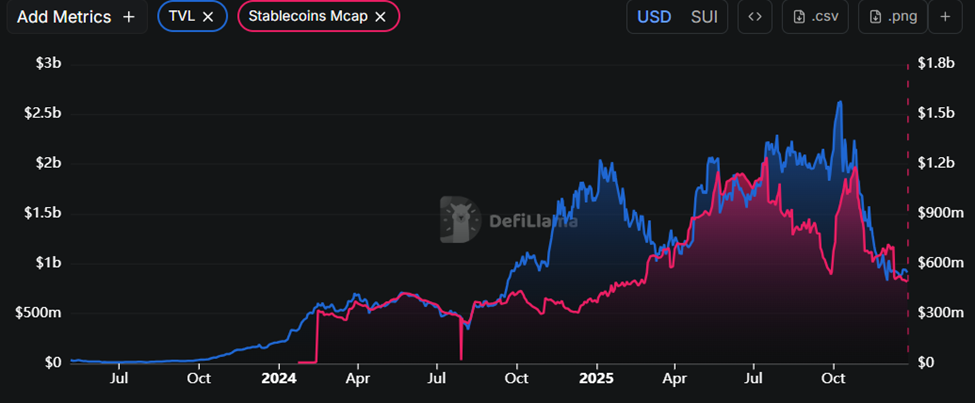 若以主网表现衡量增长潜力,Sui或将成为2026年最值得关注的山寨币。2025年间其网络持续现身DeFi与机构采用榜单,总锁仓量与稳定币流动性直至10月市场降温前始终保持强劲增势。