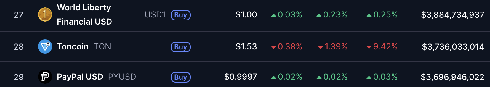 USD1稳定币市值悄然超越PayPal的PYUSD