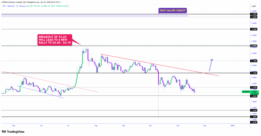 分析师CRYPTOWZRD指出,XRP价格必须突破2.75美元阻力位才能冲击3美元大关。反之,若未能守住2美元支撑位,则可能进一步回调至1.5美元甚至1美元。因此,市场参与者正密切关注2美元关键支撑位。
