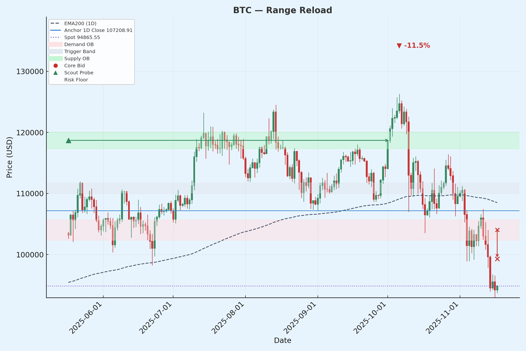 短期操作建议保持谨慎,若价格站稳94,400美元上方或从93,000美元反弹,可能出现交易机会。日线收盘突破关键区域或将激活向95,000美元的动能,反之若失守支撑位可能下探92,000美元。
