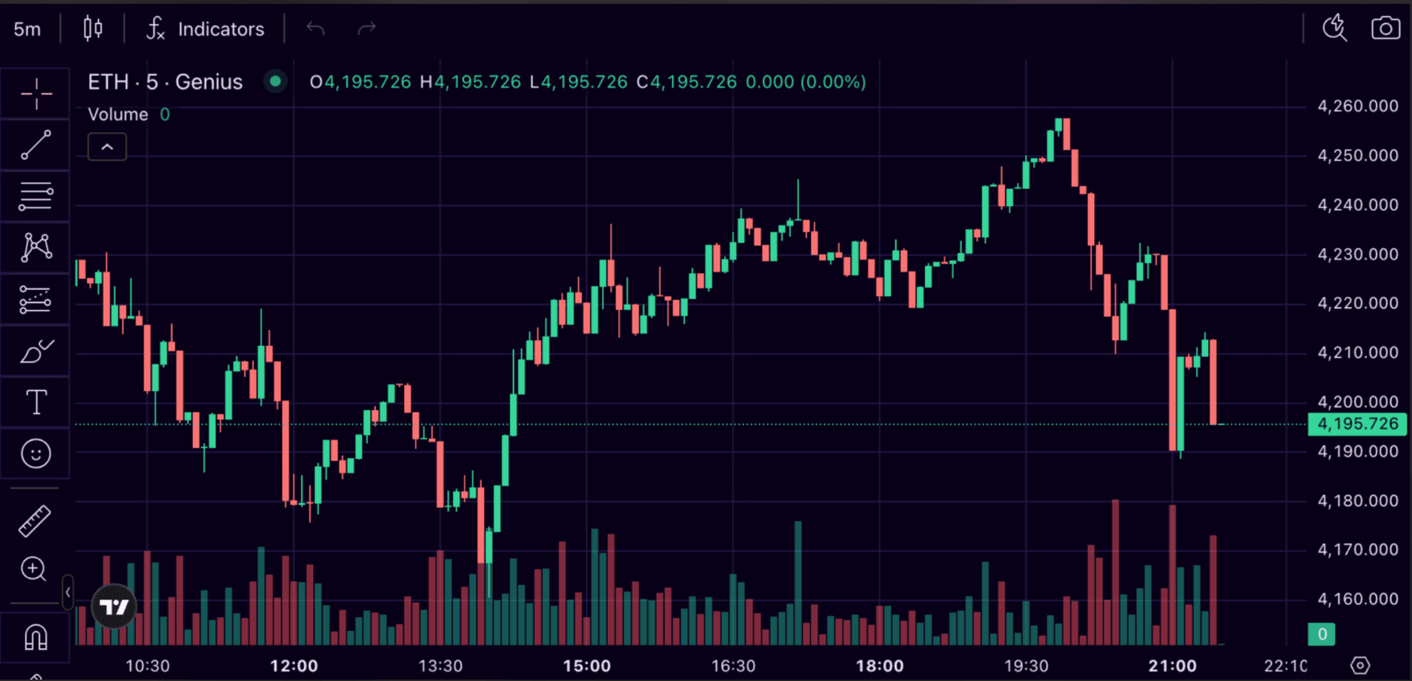 Genius将TradingView图表工具直接嵌入终端。交易者可以应用指标、绘制趋势线、标注设置、切换时间周期,而无需离开平台。振荡器、移动平均线、斐波那契工具和形态识别均可立即使用。