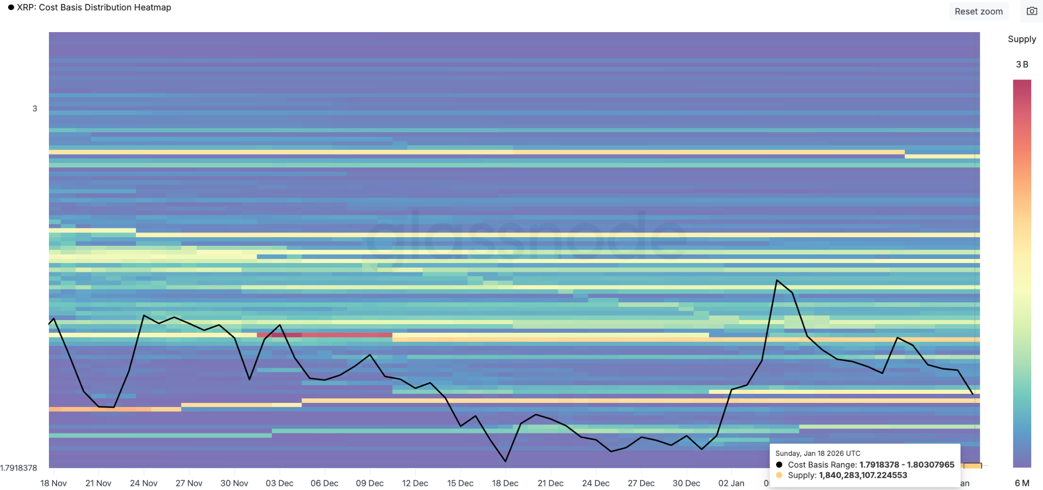 链上需求同样呈现增长,上周瑞波币链单日处理交易量达257.56万笔,创2025年7月以来新高。然而强劲的网络使用量与持续的ETF需求并未转化为价格支撑,瑞波币较1月6日创下的八周高点2.41美元已下跌18.5%。