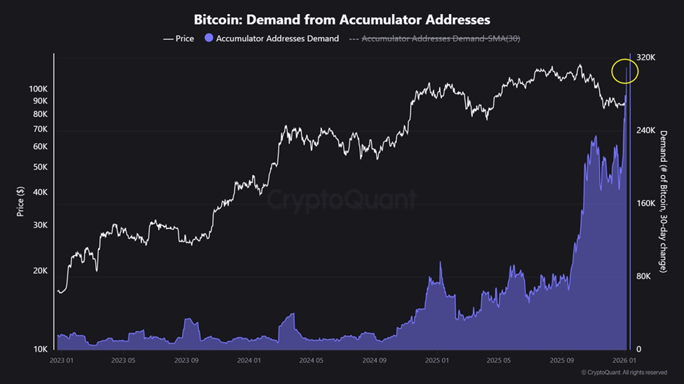 关键洞察:链上需求疲软引发对比特币价格前景的担忧。比特币矿工在一月的前六天内抛售了33,000枚BTC。这是牛市的燃料还是离场流动性?加速积累的节奏及其可能对BTC价格走势产生的影响。