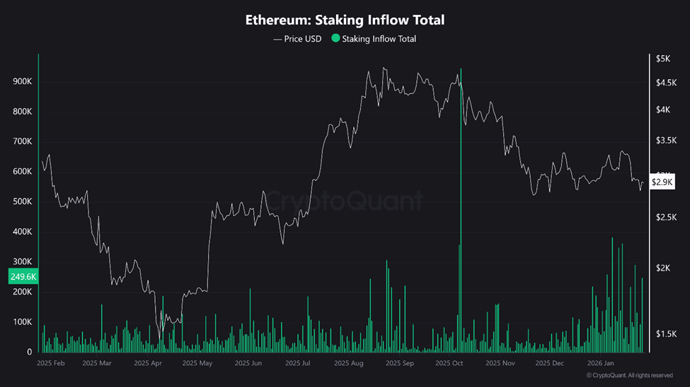 关键洞察:以太坊质押地址持续积累,预示信心在折价中回归