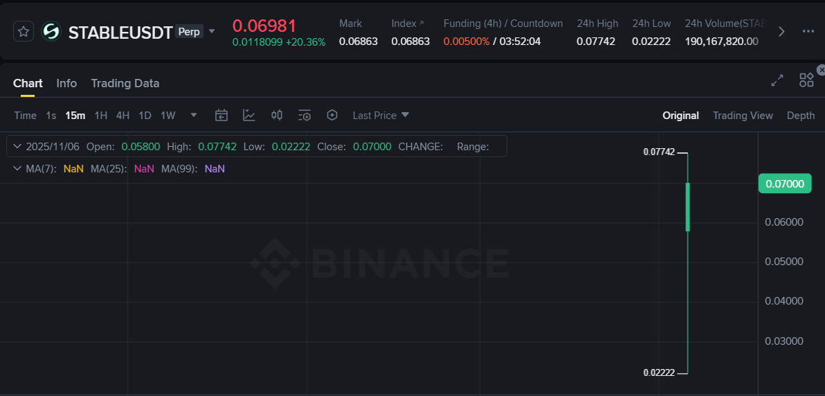 币安最新公告显示,其期货交易平台将上线STABLE/USDT交易对,并于今日完成挂牌。由于上市前期货通常波动剧烈,币安为此交易对开放了最高5倍杠杆。