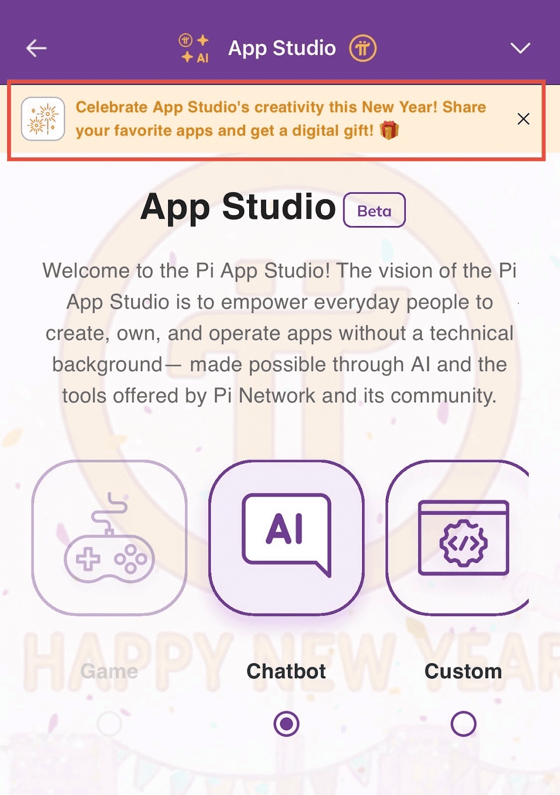 前1000名符合要求的参与者将获得5 Pi积分。该积分仅限在App Studio内使用,适用于应用创建与自定义。