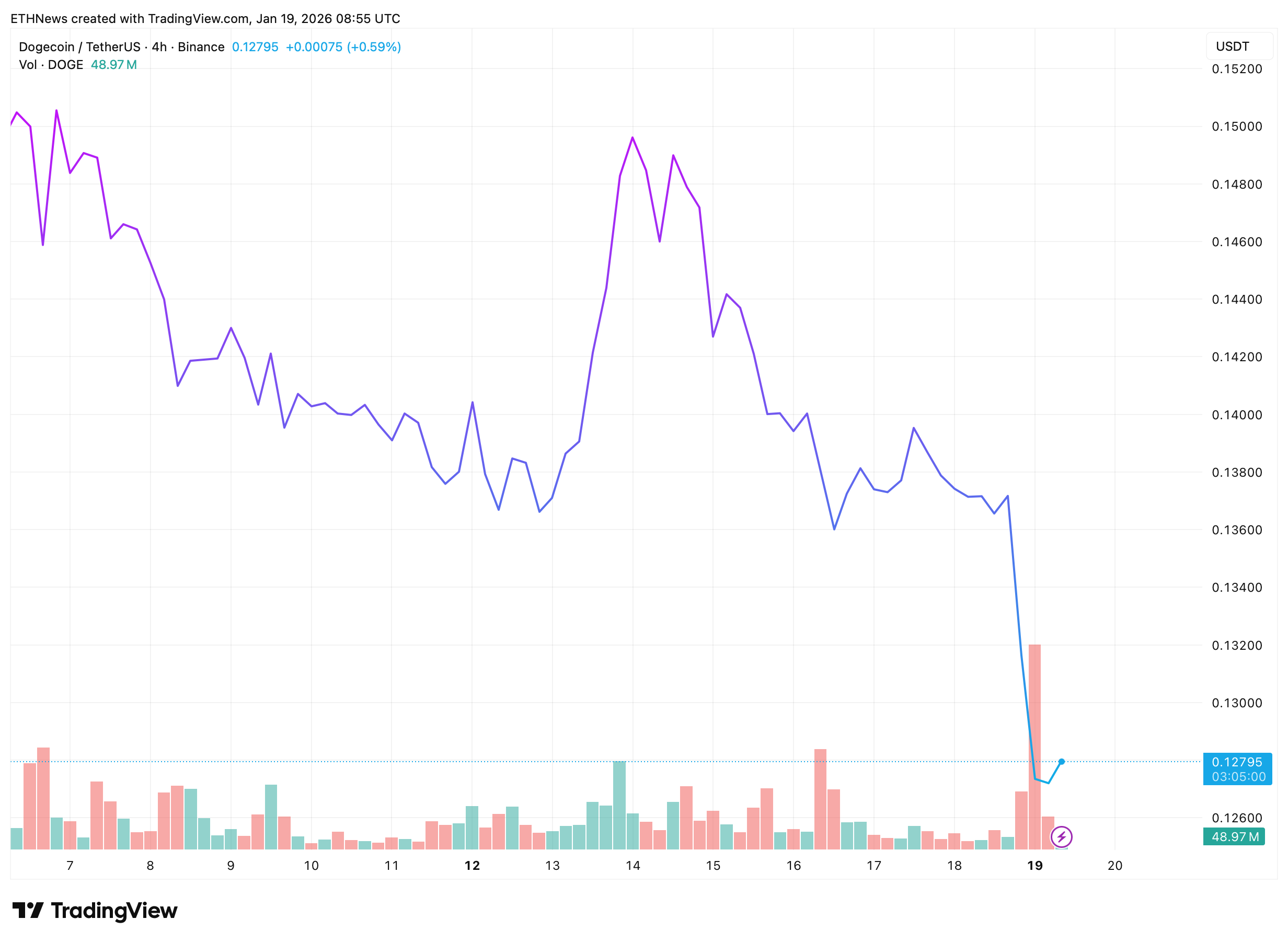 当前狗狗币在快速情绪化下跌后进入整理阶段。此基础能否持稳将取决于价格在当前水平的反应,但图表明确显示失守0.137美元是将短期控制权交还卖方的决定性转折点。