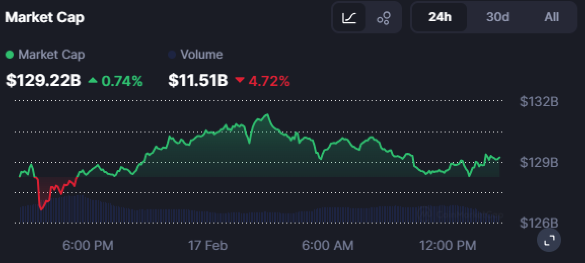 经历连续一个月的深度下跌后,Solana (SOL) 本周走势趋于稳定。根据 CoinMarketCap 数据,截至2月17日,SOL交易价格接近83美元,周环比基本持平。这一走势标志着该代币在过去30天内市值缩水超40%后,迎来了最稳健的周收盘表现。数据显示,Solana生态系统的总市值也出现上涨,从1224亿美元增至1291亿美元,涨幅近5.5%。